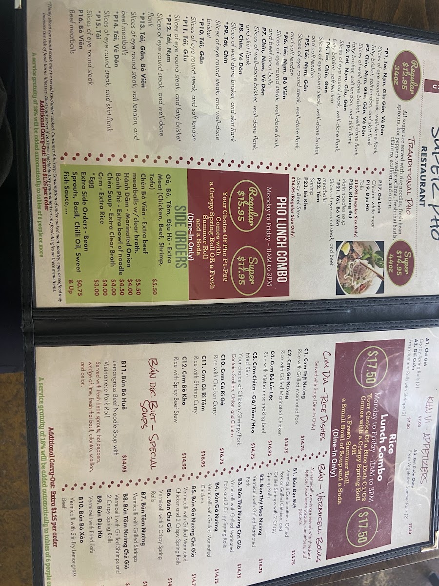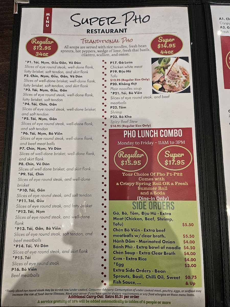 Super Pho Menu